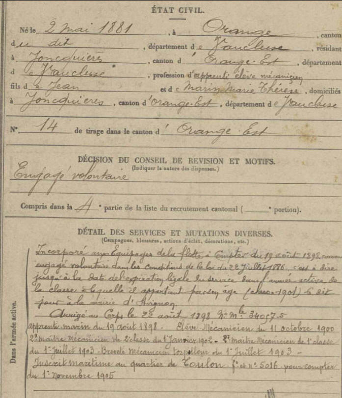 vaisseau le 1er octobre 1907, port CHERBOURG.