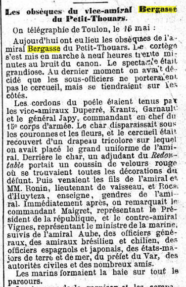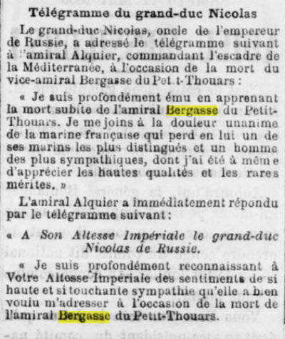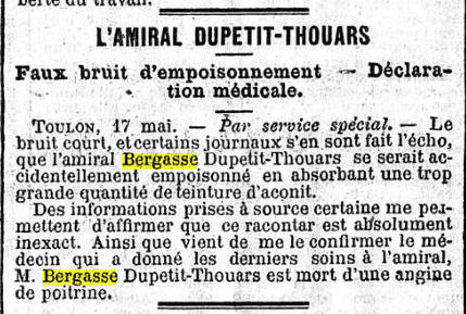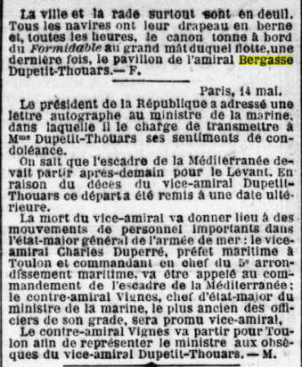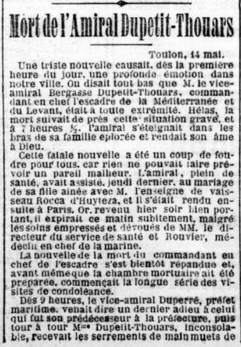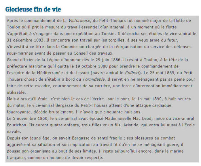 C'est à son bord qu'il décèdera subitement, en rade de TOULON.