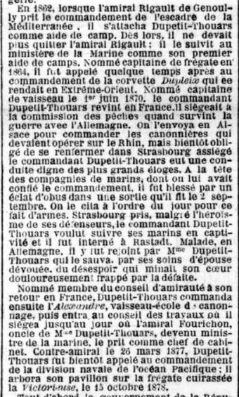 Aide de camp de l'amiral FOURICHON en janvier 1877.