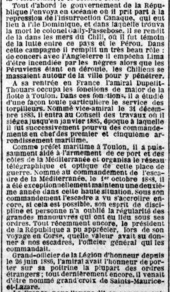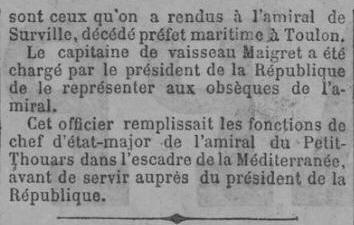 Préfet maritime du 5ème arrondissement à TOULON en octobre 1886.