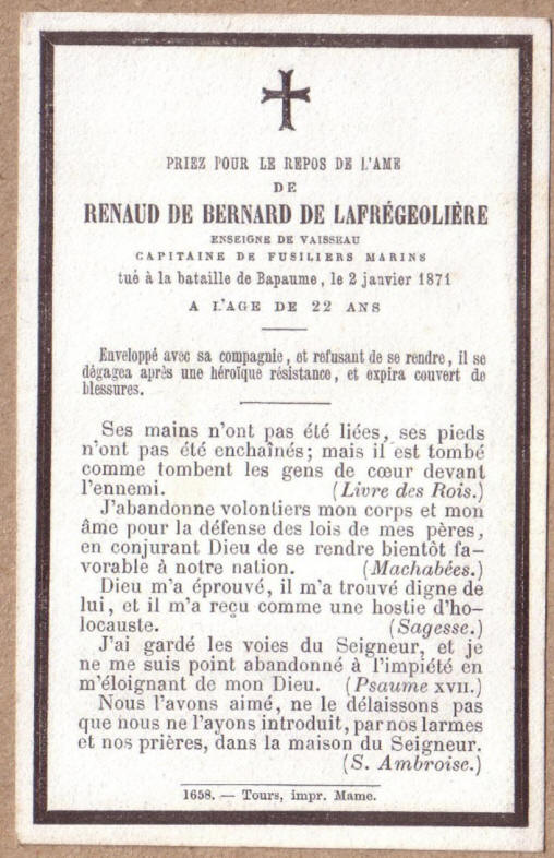 (Maine-et-Loire) - Tué le 3 janvier 1871 à BAPAUME (Pas-de-Calais).