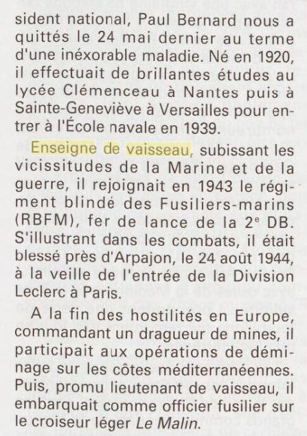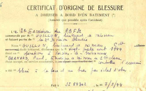 fusiliers-marins (2e D.B.). Il est blessé au combat devant