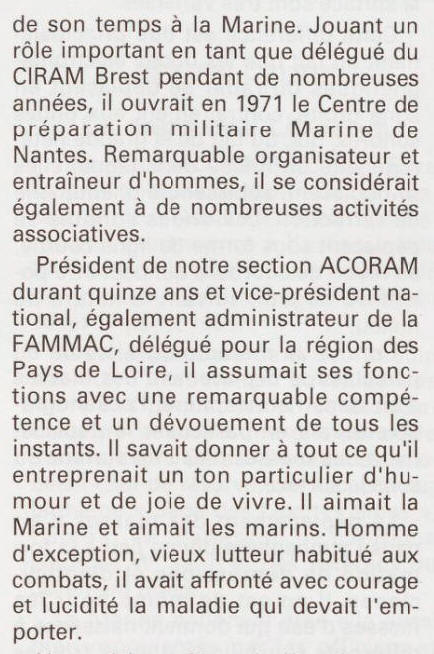 Marine Nationale. Président de l'A.C.O.R.A.M. (officiers) de la