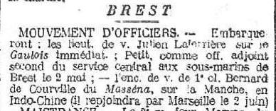 Entre dans la Marine en 1902, Aspirant le octobre 1905; port BREST.