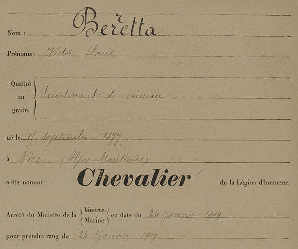 d'Honneur le 24 janvier 1919, étant en service aux torpilleurs de