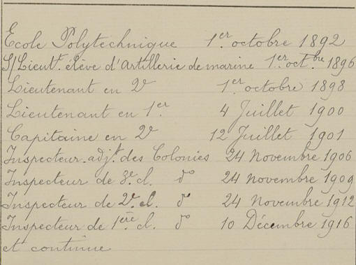 service à l'École d'application d'artillerie de FONTAINEBLEAU.