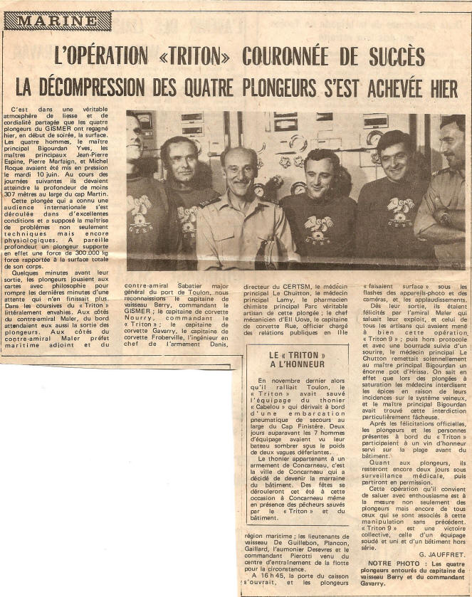 l'exploit des plongeurs du GISMER plaçant la Marine Nationale (et la
