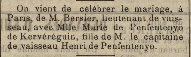 1884 à PARIS XVIIe (Seine) avec Marie Augustine Clara de PENFENTENYO