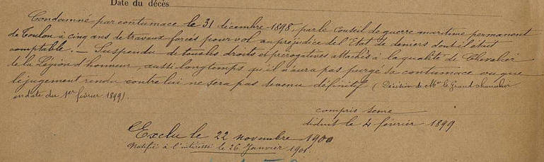 le 31 décembre 1898, à 5 ans de travaux forcés pour vol au préjudice