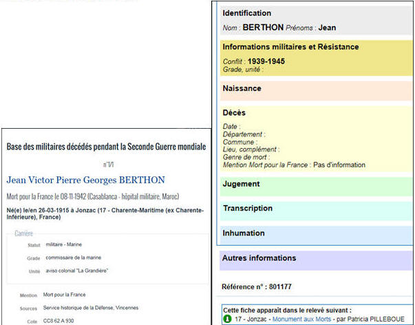 Son nom est inscrit sur le monument aux morts de Jonzac