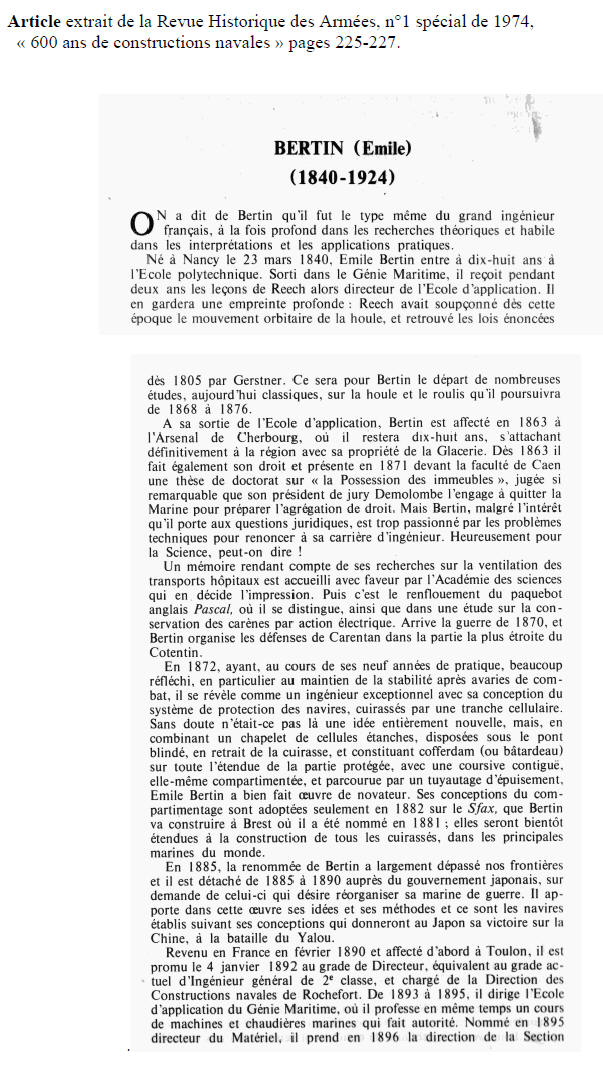 signataire d'un article intitulé : "Louis, Émile Bertin - 1840-1924