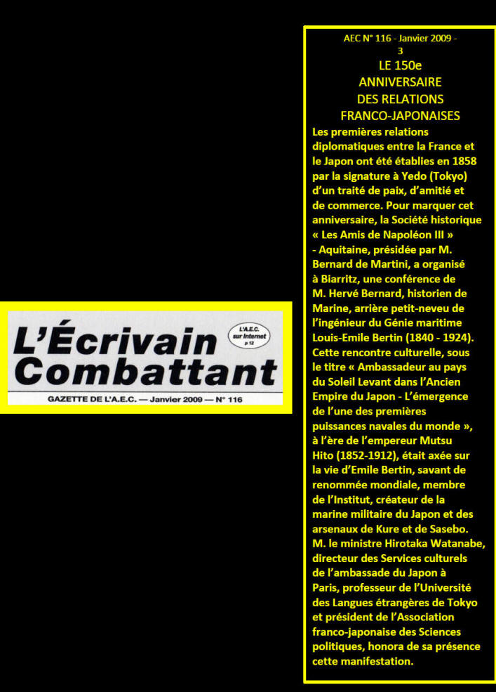 février 1886, Émile Bertin est détaché au Japon pour quatre ans,