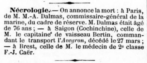 Décédé le 28 mars 1873 à SAÏGON (Cochinchine)