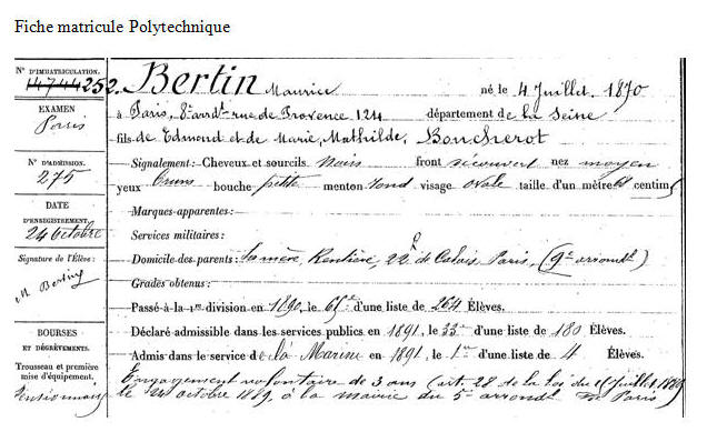Élève de l'École polytechnique en 1889, opte pour la Marine.