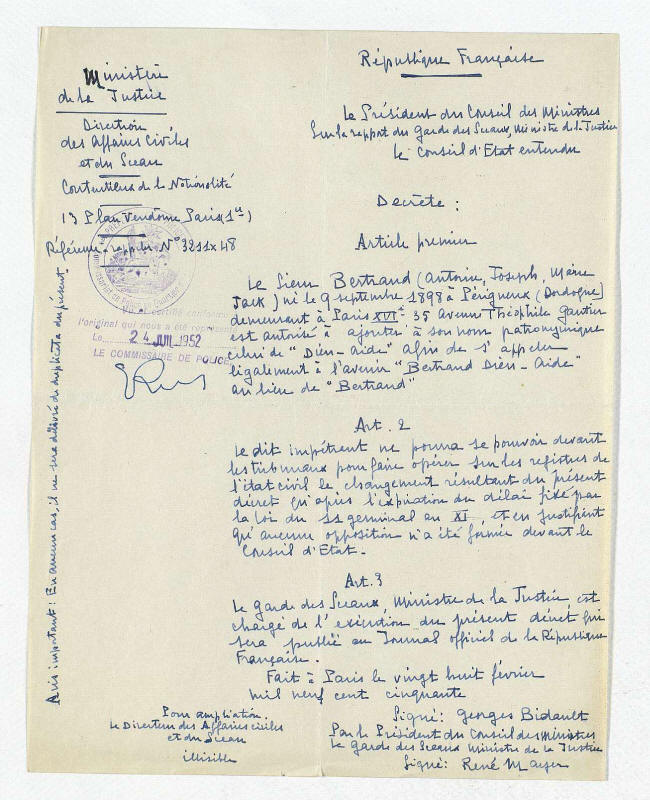 à ajouter Dieu Aide à son patronyme = Bertrand Dieu Aide