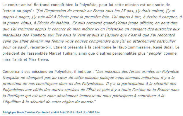 supérieur des Forces armées en Polynésie et océan Pacifique en 2016