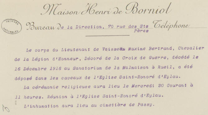une maison de santé de Rueil-Malmaison où il décéda le 16 décembre