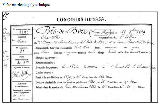 Élève du génie maritime le 1er novembre 1860, au dernier avril 1861