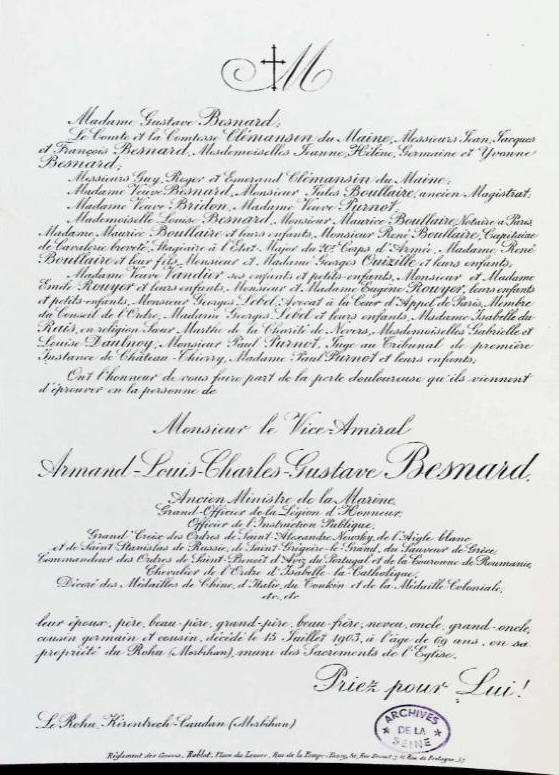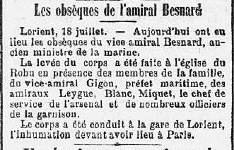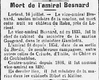 Besnard quitte le service actif en novembre 1898 et meurt au château