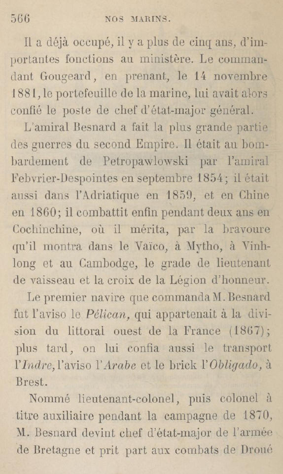 d'Afrique puis commande en 1867 le Pélican sur les côtes de France