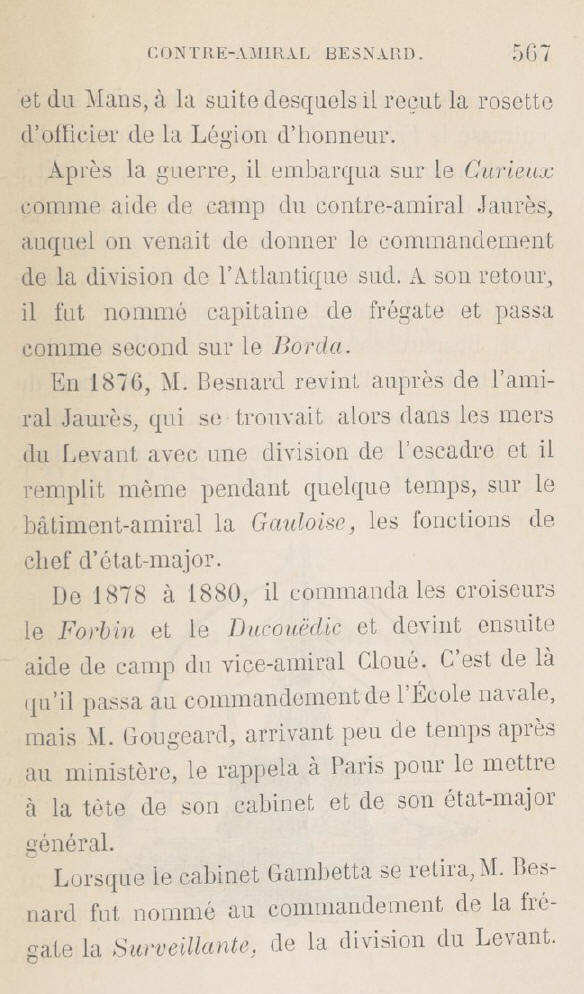Capitaine de frégate en 1873, il commande en second le Borda,