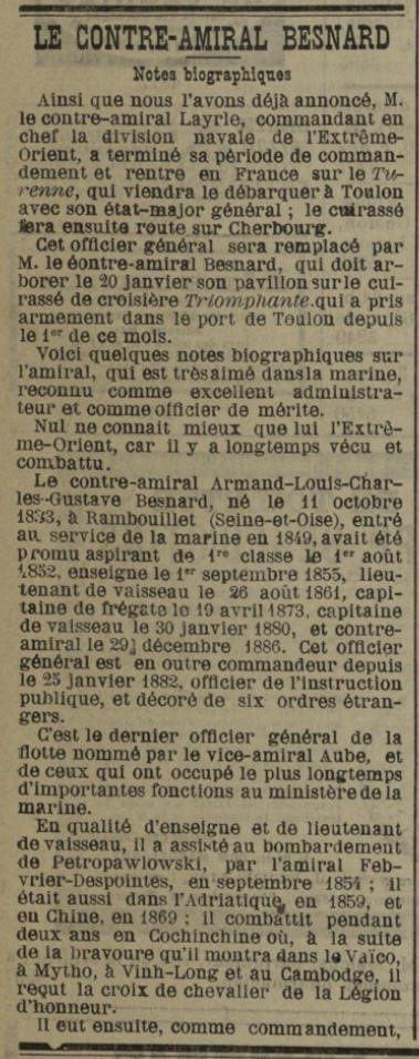d'avril 1887 à décembre 1889, il commande en 1890 la Division navale