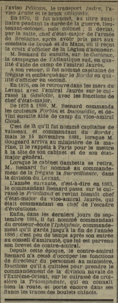en 1884, il commande ensuite l'Iphigénie, croiseur-école des