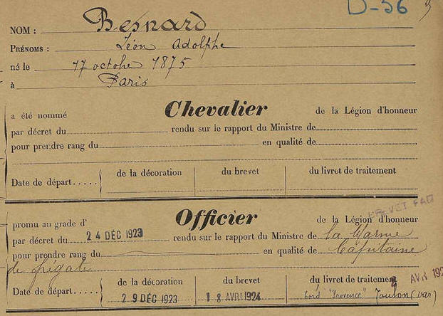 d'Honneur le 24 décembre 1923 à bord du "PROVENCE".