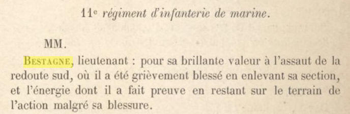 d'Honneur le 10 juillet 1891, étant en service au 11ème RIMA.