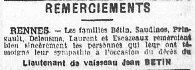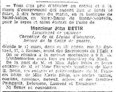 RENNES (Ille-et-Vilaine) - Décédé le 17 mars 1922 à RENNES