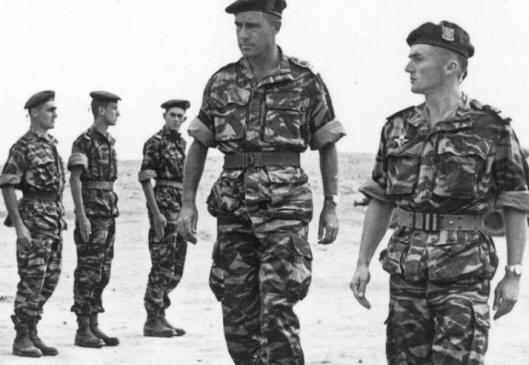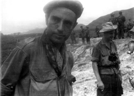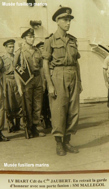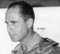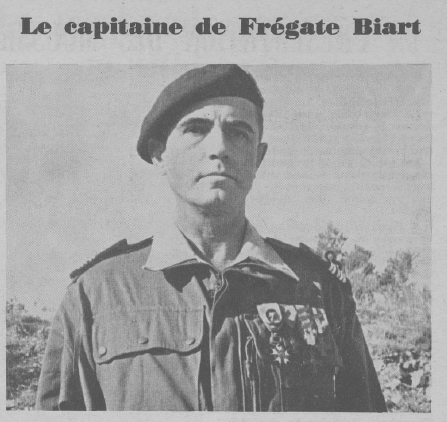 Aux côtés du Commandant Biart en tenue camouflée (au centre) se trouve