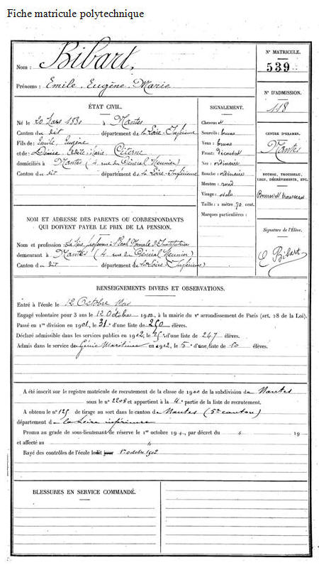 Élève de l'École polytechnique le 1er novembre 1900, opte pour le