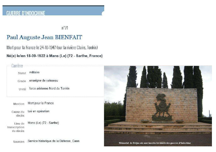 L'enseigne de vaisseau Bienfait a été inhumé le 25 novembre 1947 au