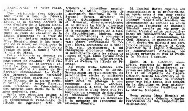 1948 (JO du 22 juin 1948 p. 6004), l'enseigne de vaisseau Bienfait a