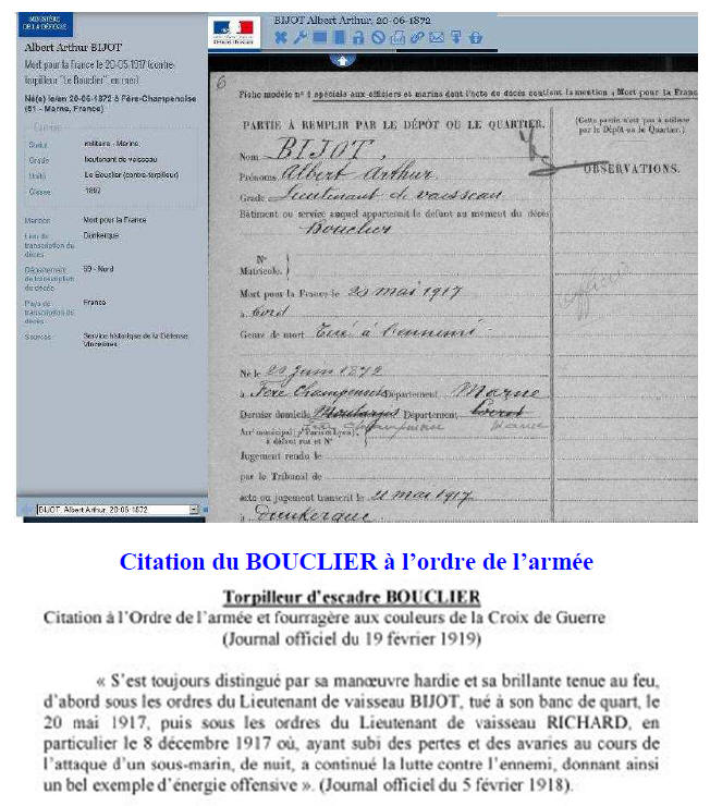 Ont été tués : le Lieutenant de Vaisseau BIJOT, commandant,