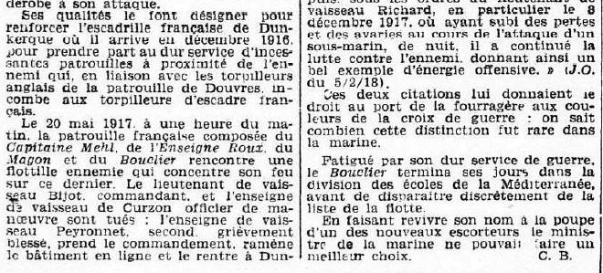 l'Armée navale : " Commandant le BOUCLIER. Tué glorieusement sur sa