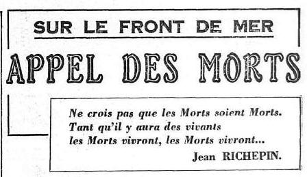 N.E. Le Commandant GUY signale au front de mer de Nieuport : «
