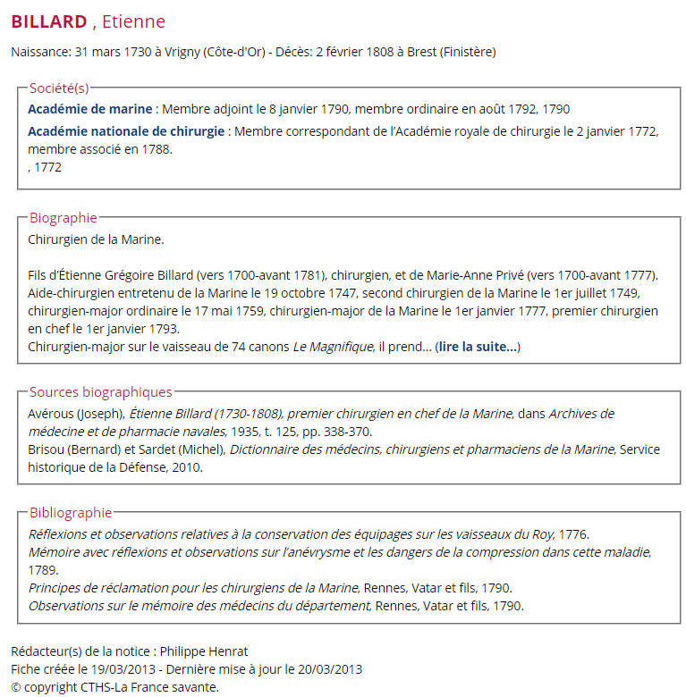SOURCES : bio Billard, Philippe Henrat, CTHS La France savante. Base
