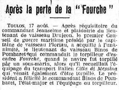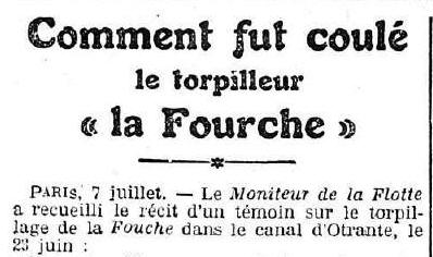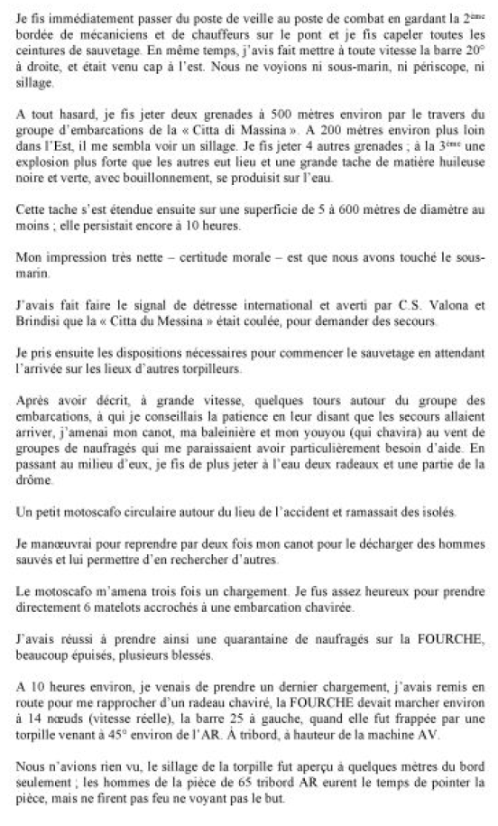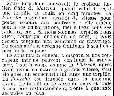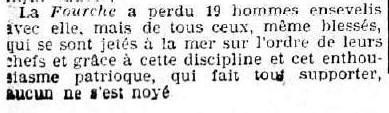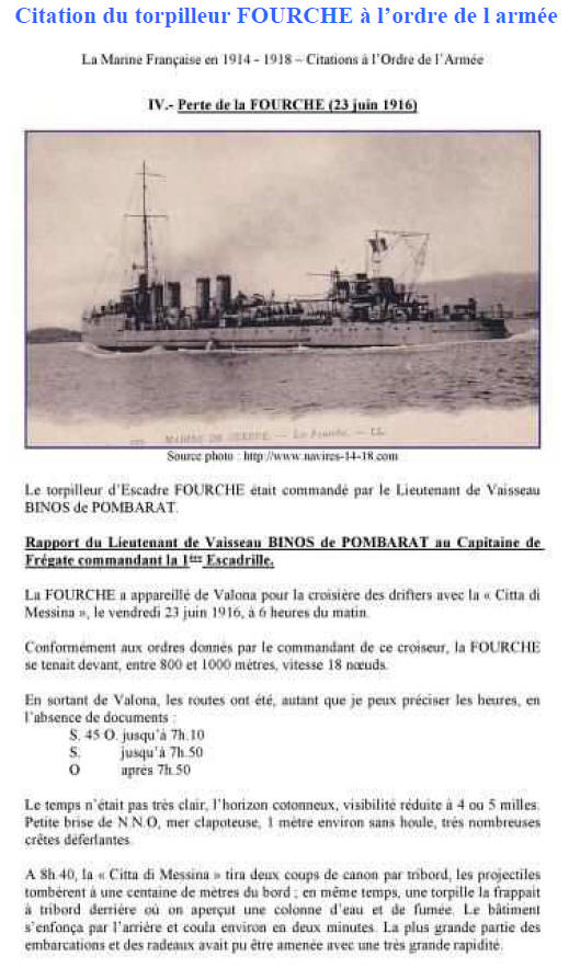 torpilleur "FOURCHE", il est cité à l'ordre de l'Armée navale : "