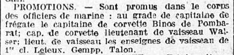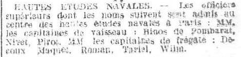 sur le cuirassé "MASSÉNA", Escadre du Nord (Cdt Marie DE FAUQUE DE