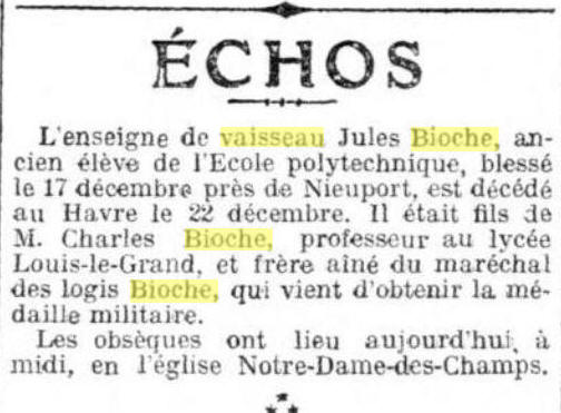 Décédé des suites de ses blessures le 22 décembre 1914 à l'Hôpital