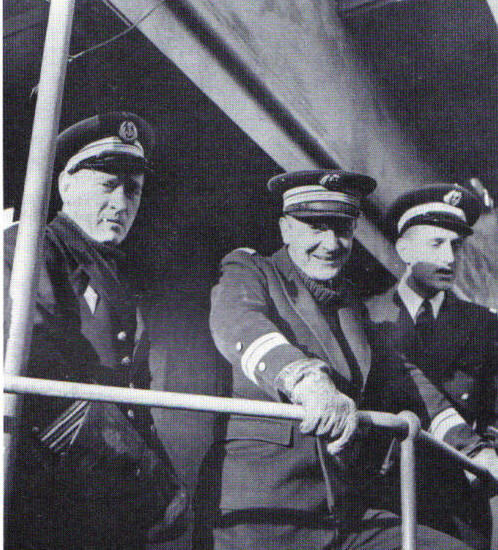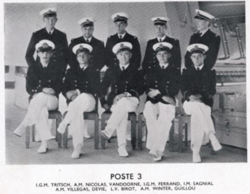 A gauche, Cdt Birot du Mimosa, au centre Cdt Blaison du Surcouf et à