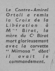 Le capitaine de corvette Birot est désigné le 17 avril 1941 comme