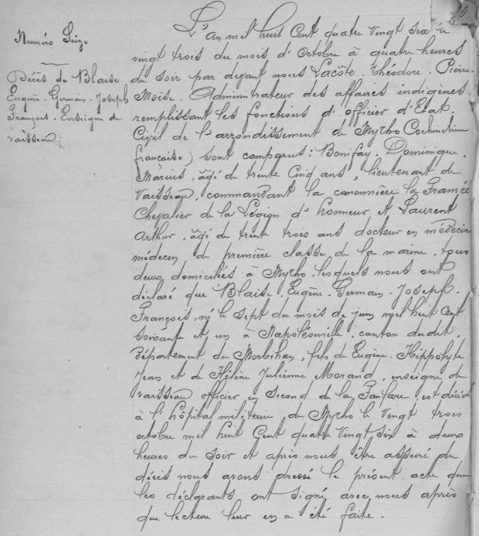(Morbihan) - Décédé le 23 octobre 1886 à MY-THO (Vietnam)