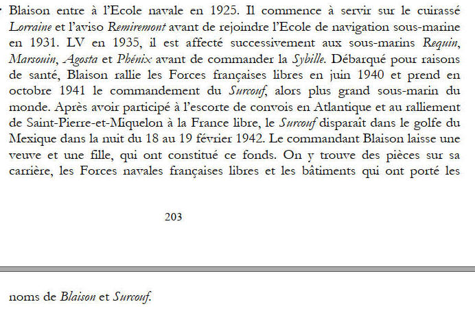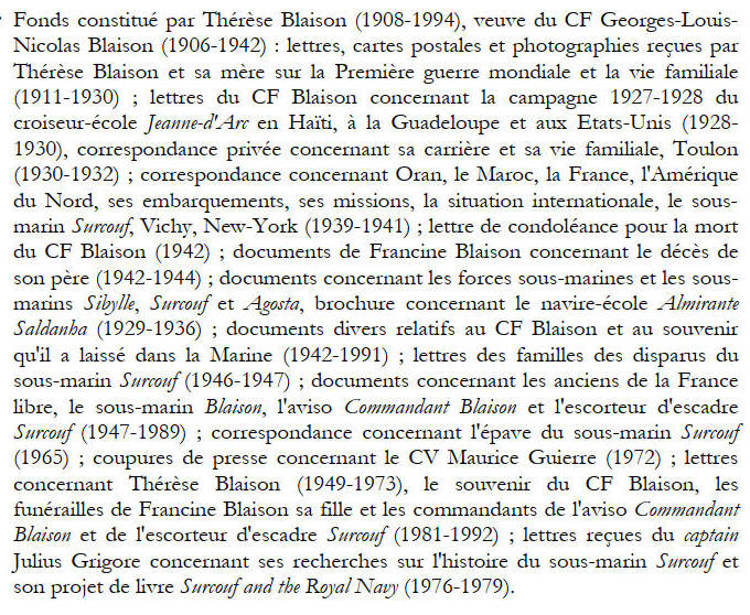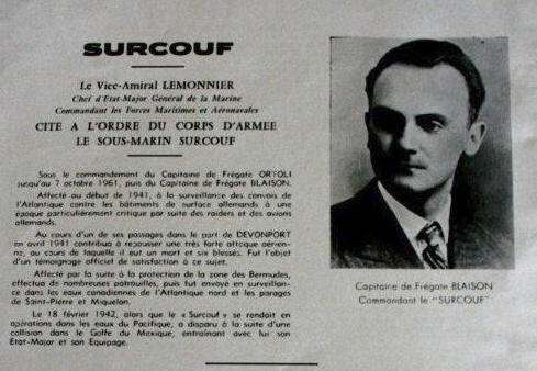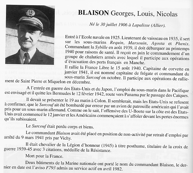 Commandant Blaison et l'escorteur d'escadre Surcouf (1947-1989) ;