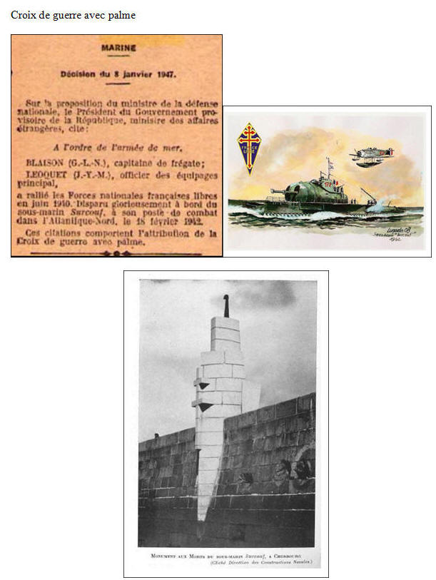disparus du sous-marin Surcouf (1946-1947) ; documents concernant