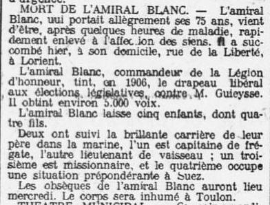 sur le cuirassé "TURENNE", Aide de camp du Contre-amiral Adrien