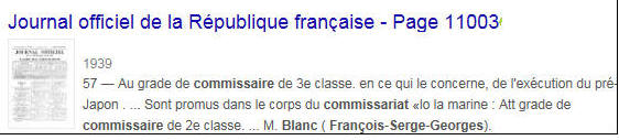 commissariat de la marine, pour compter du15 aout 1939, au grade de
