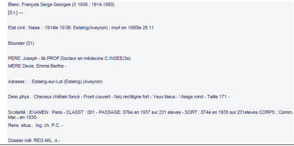 polytechnique promotion 1936 EXAMEN : Paris - CLASST : 081 -