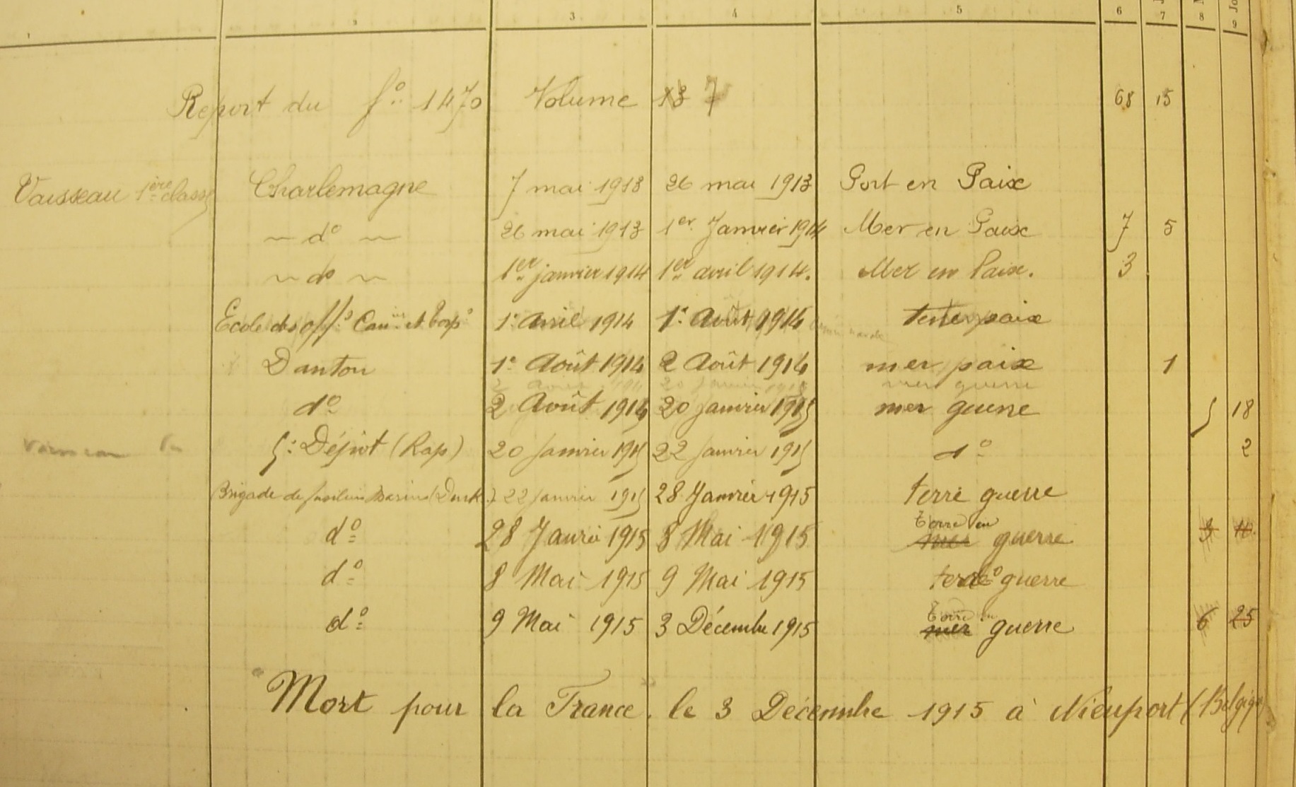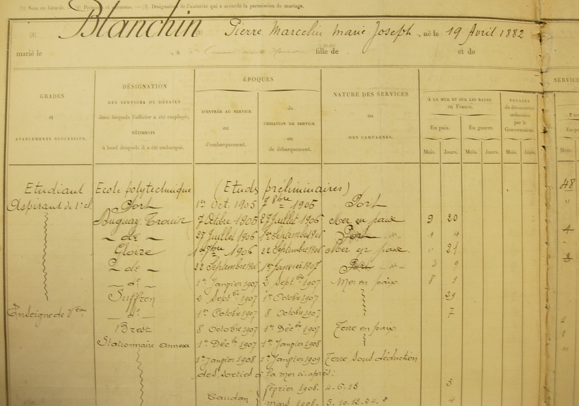 Aspirant le 1er octobre 1905, port BREST. Au 1er janvier 1906, port
